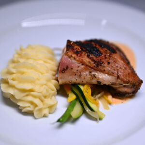 Fire roasted pork chops with a hickory smoked barbecue sauce...
